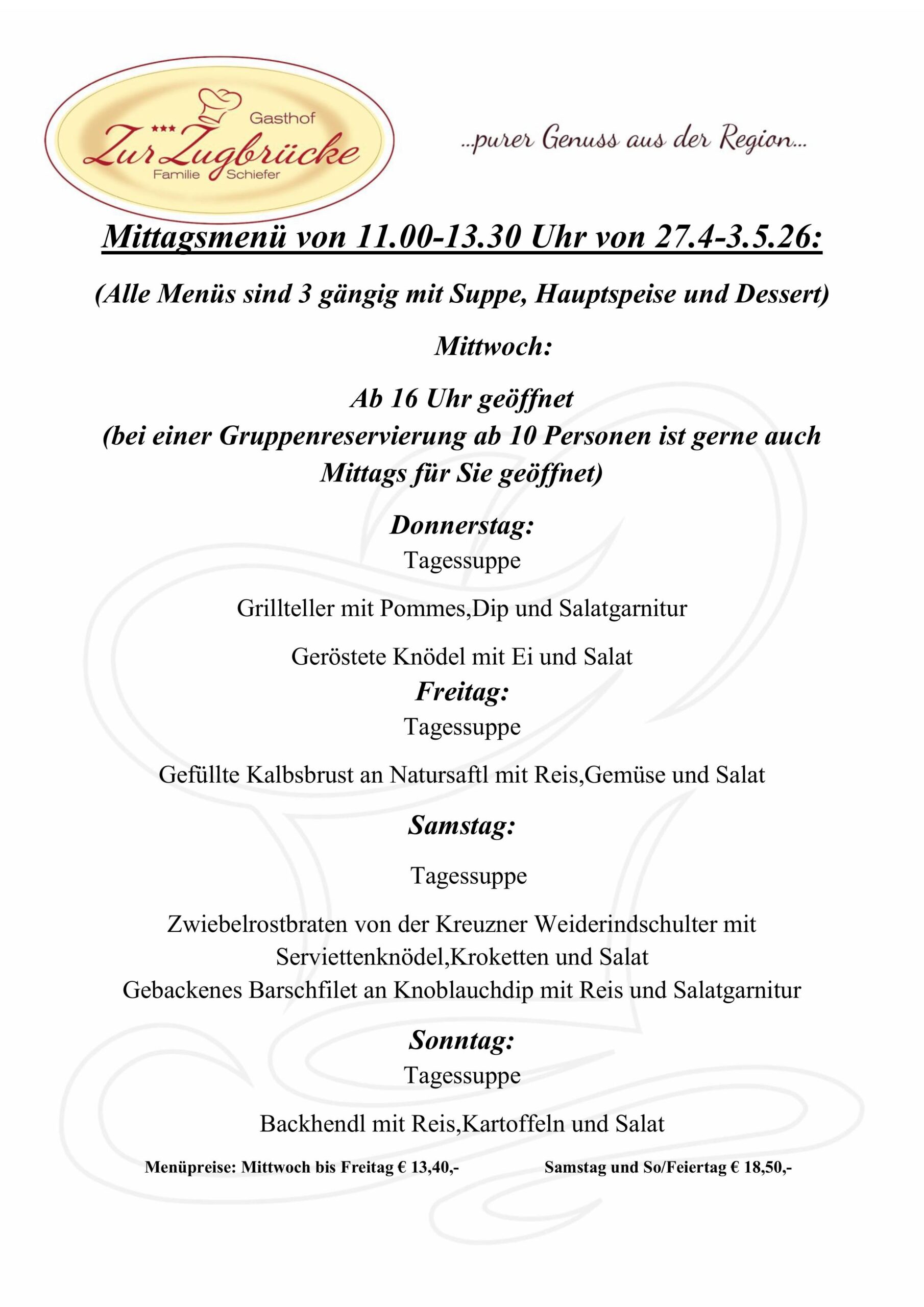Spezialitäten zur Zeit im Gasthof Schiefer